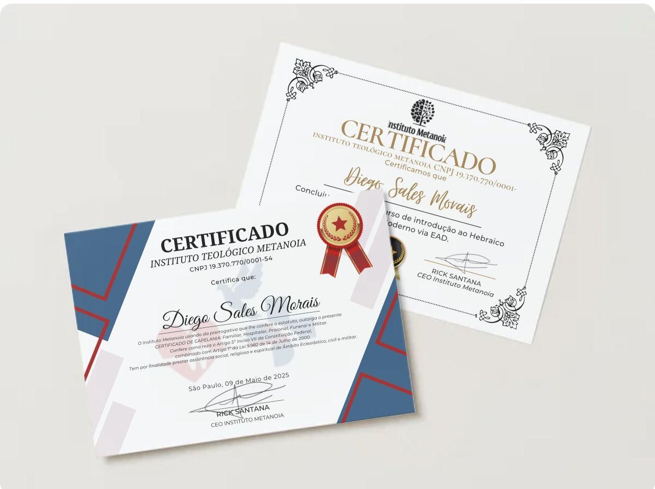 Disponibilizando acesso a um conteúdo 100% online, você aprende no seu próprio ritmo, com conteúdo acessível e de qualidade. Não importa se você é iniciante ou já tem alguma base: nosso curso é para todos que desejam se conectar com a palavra de Deus de maneira profunda e prática.